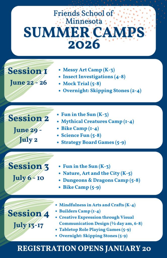 Note: Friends School families will receive priority for registration until Thursday, January 22nd. Outside families are welcome to register on the 20th. If the class fills up with Friends School families, you will be placed on a waitlist and notified by Friday, January 23rd.